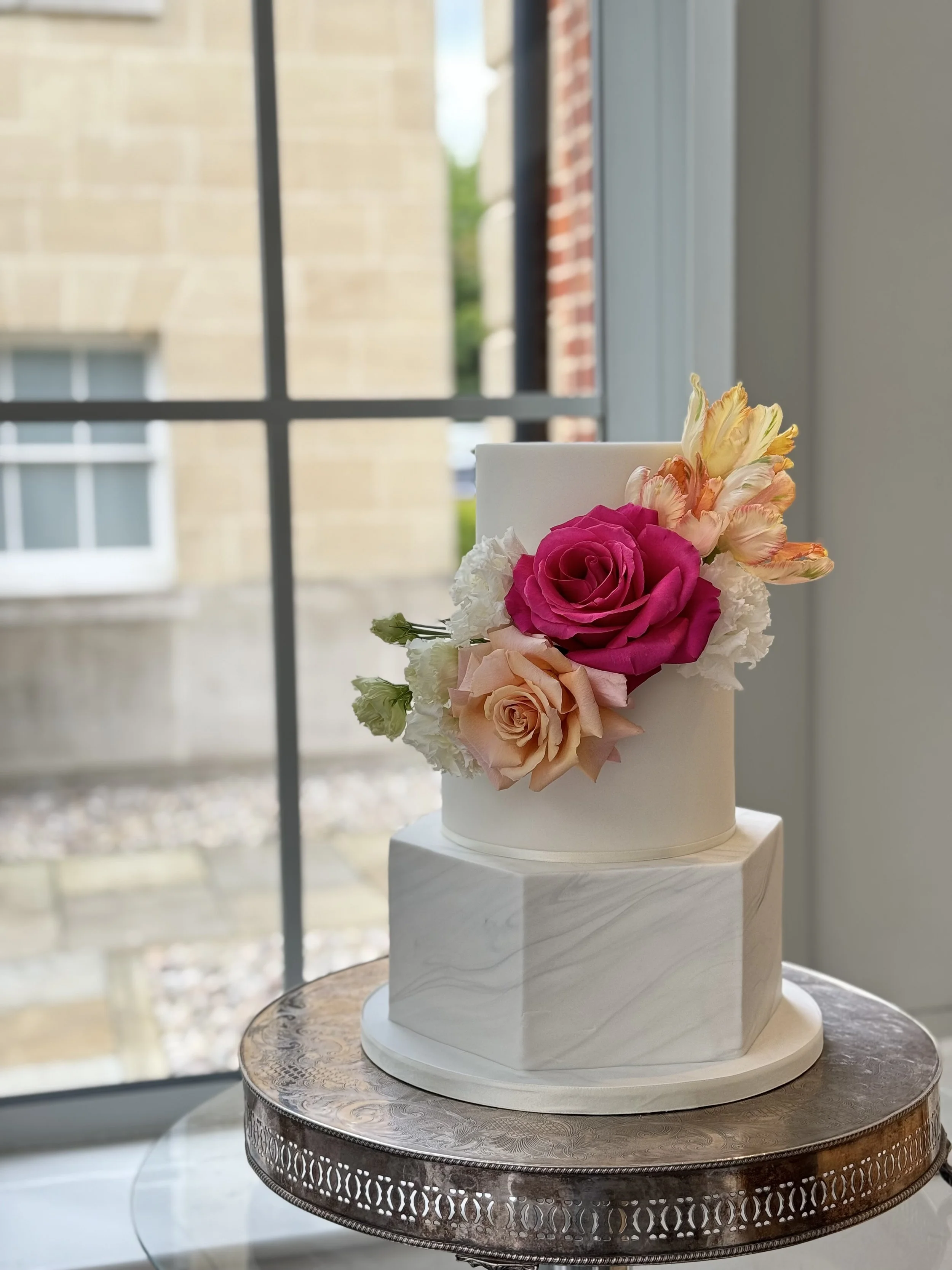 There’s something undeniably beautiful about a wedding cake adorned with fresh blooms,delicate petals echoing the bridal bouquet, colours tying everything together with effortless elegance. But as a florist with many years of experience, I can tell you, it’s not quite as simple as popping a few flowers on top and calling it a day. In fact, many flowers used in wedding work are not safe for food contact, and this is where careful collaboration between your florist and cake maker becomes absolutely essential.
