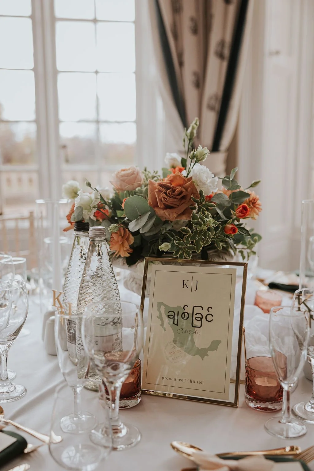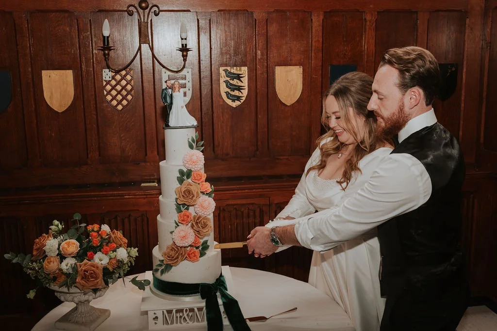 The venue paired beautifully with Kathryn and James' vision: rich seasonal colour, gold accents, and soft romantic florals.