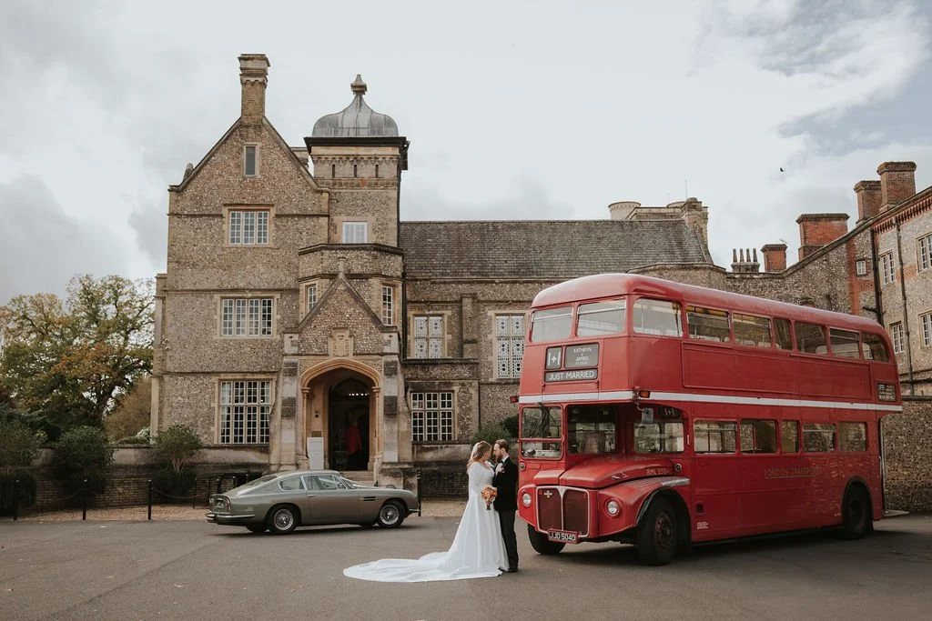 From the church, guests climbed aboard a classic red Routemaster bus and were transported through the Surrey countryside to the breathtaking setting of Horsley Towers.