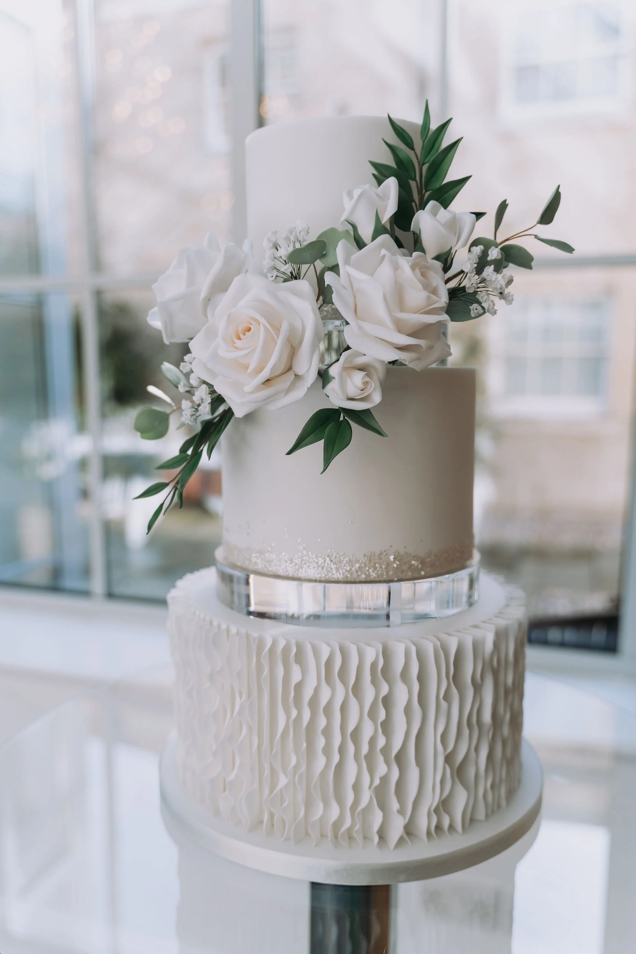 Of course, not every couple gets drawn to intricate details or floral designs, and that's where style becomes even more powerful. A cake doesn't need to be elaborate to make an impact. Sometimes, a more contemporary design placed within a beautifully traditional venue can create the most striking contrast, resulting in a real sense of occasion as soon as you walk into the room.